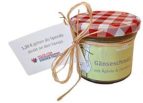 Ebenfalls selbstgemacht, wenn auch durch die Küchenexperten des Studierendenwerks, ist das in der Vorweihnachtszeit produzierte und hübsch abgefüllte Gänseschmalz.